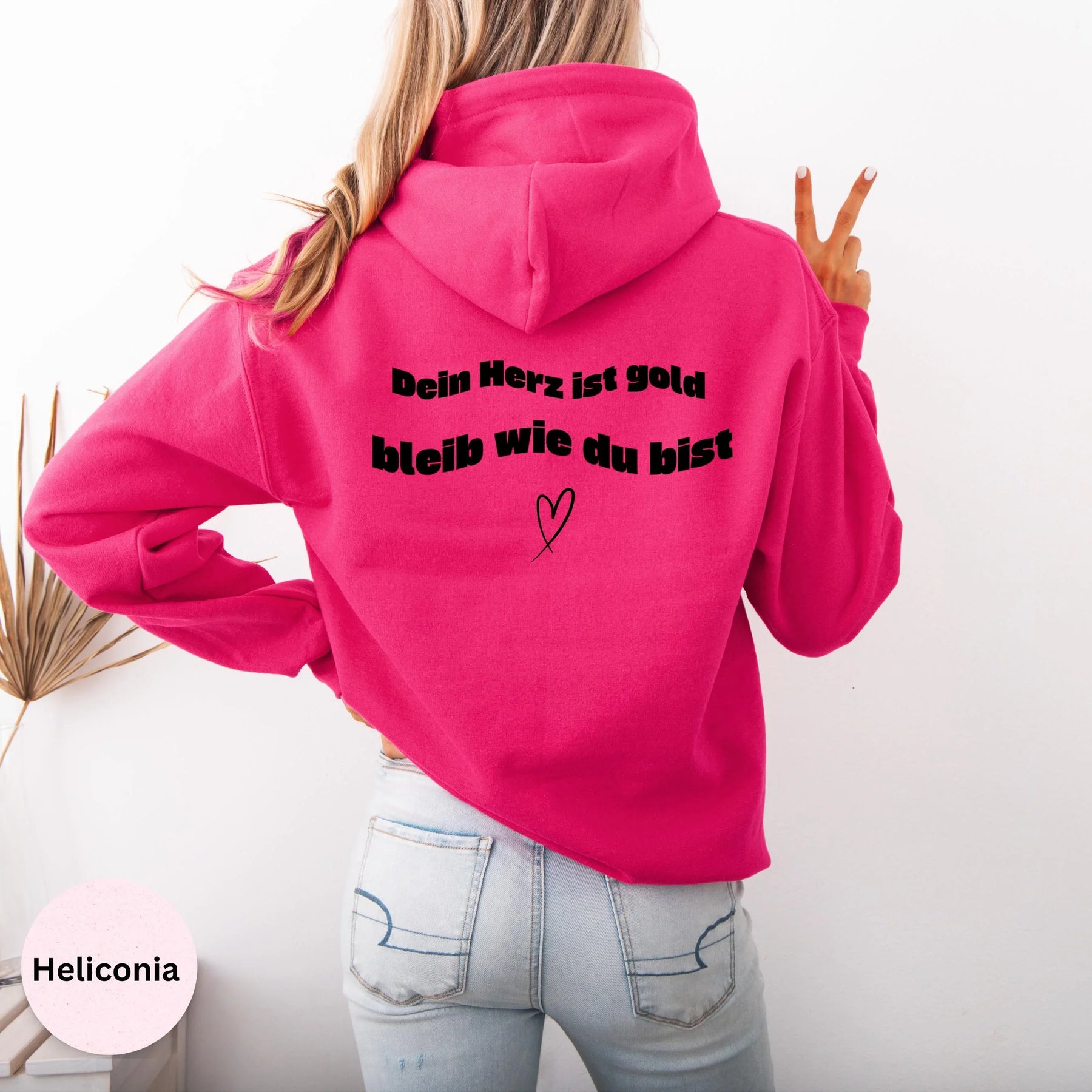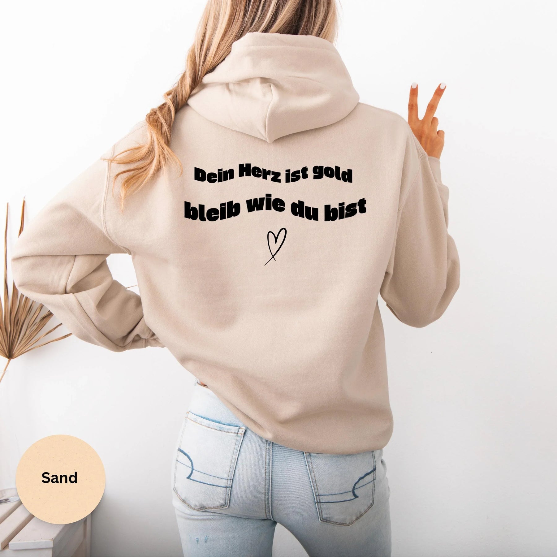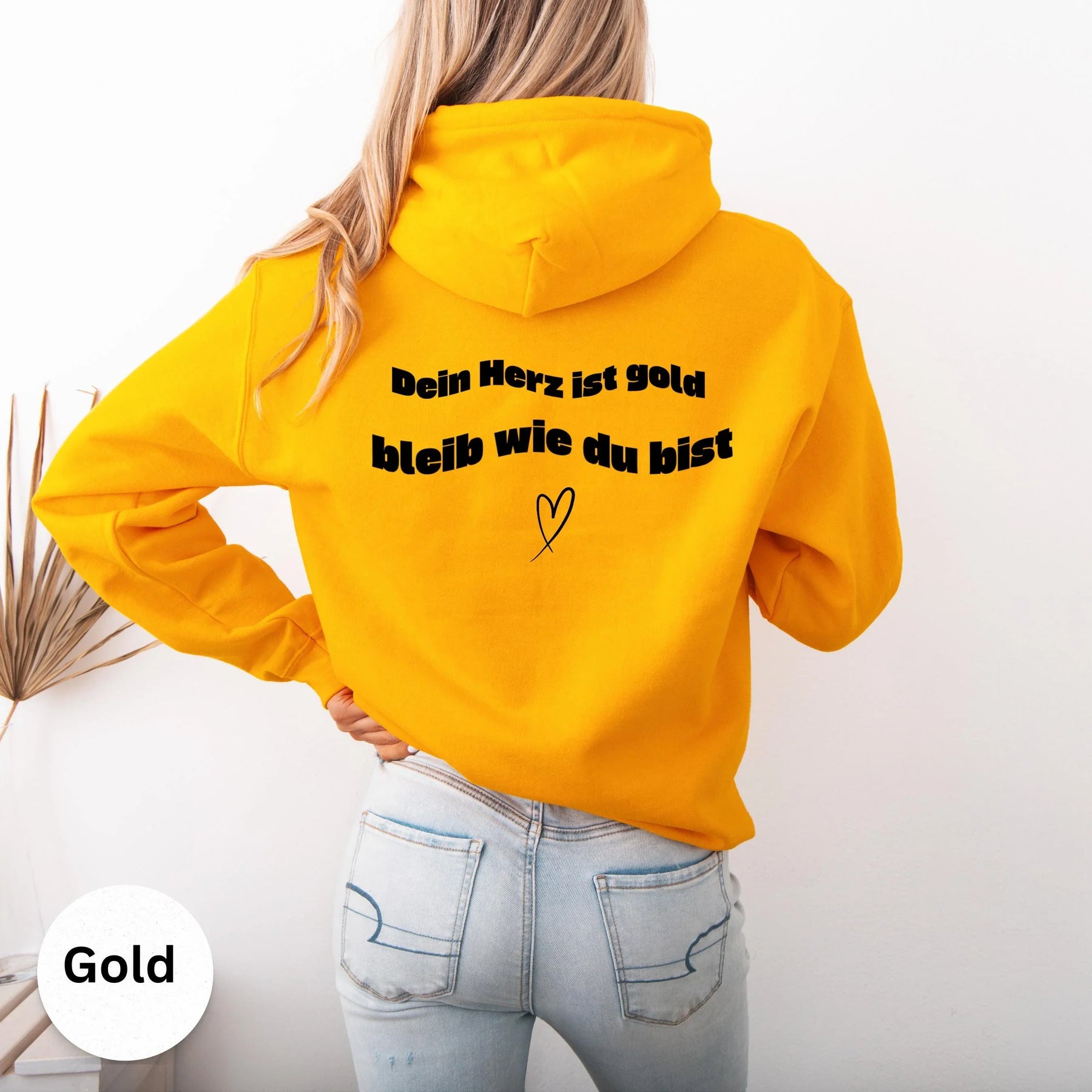 Dieser kuschelige Hoodie mit dem Spruch Dein Herz ist Gold bleib wie du bist“ ist das perfekte Geschenk für liebe Menschen. Ob als Aufmunterung, Dankeschön oder kleine Erinnerung daran, wie besonders jemand ist dieser Hoodie sagt es mit Stil und Herz.