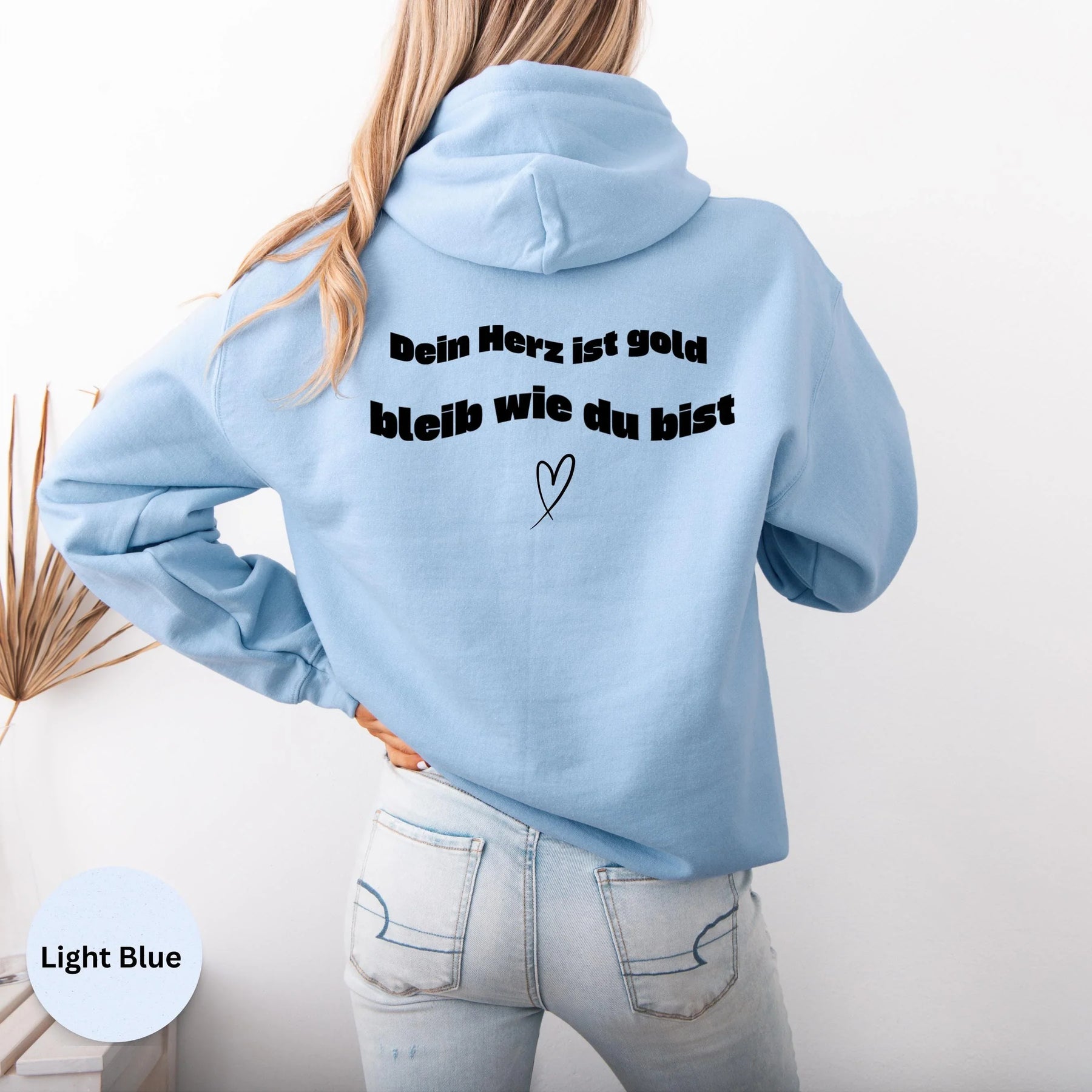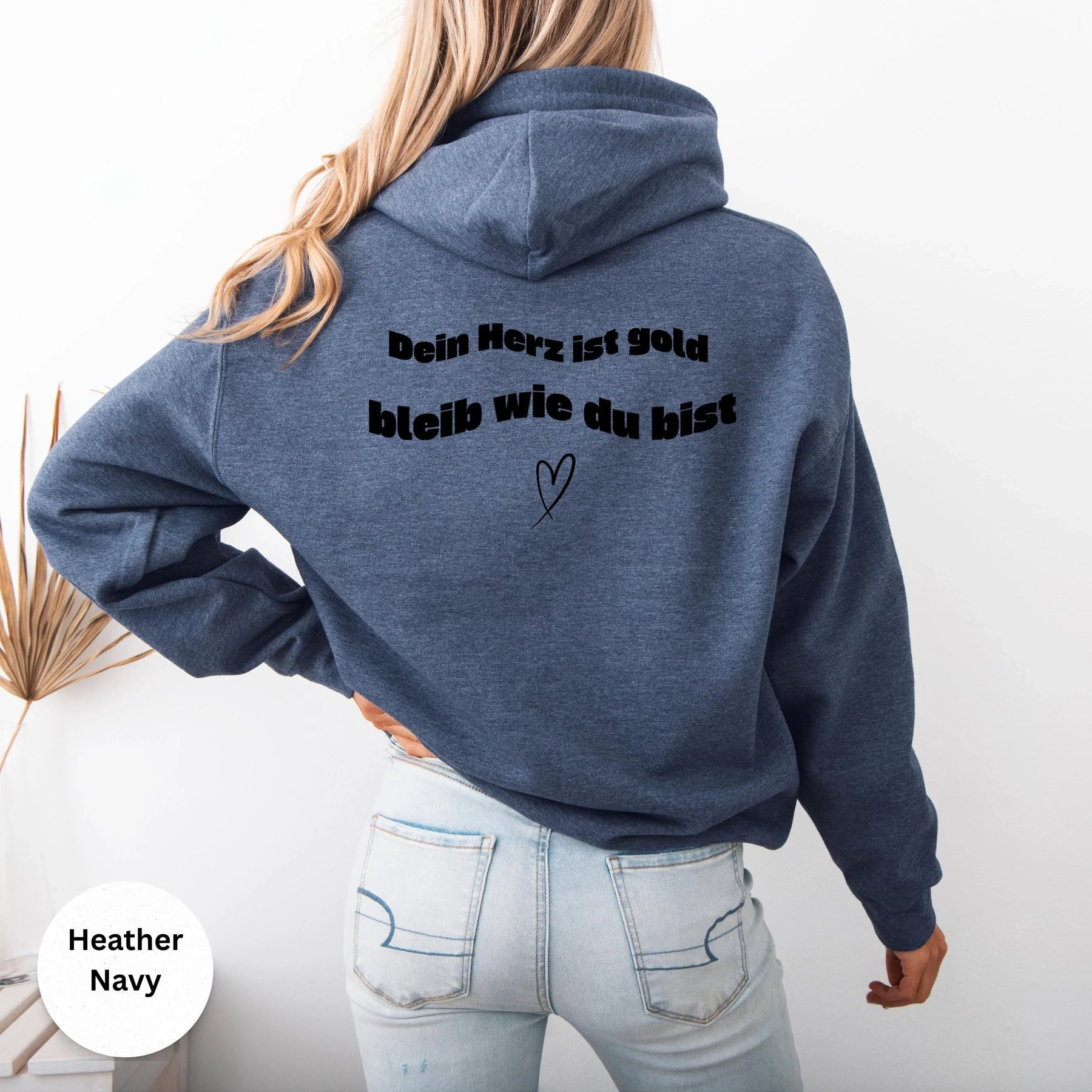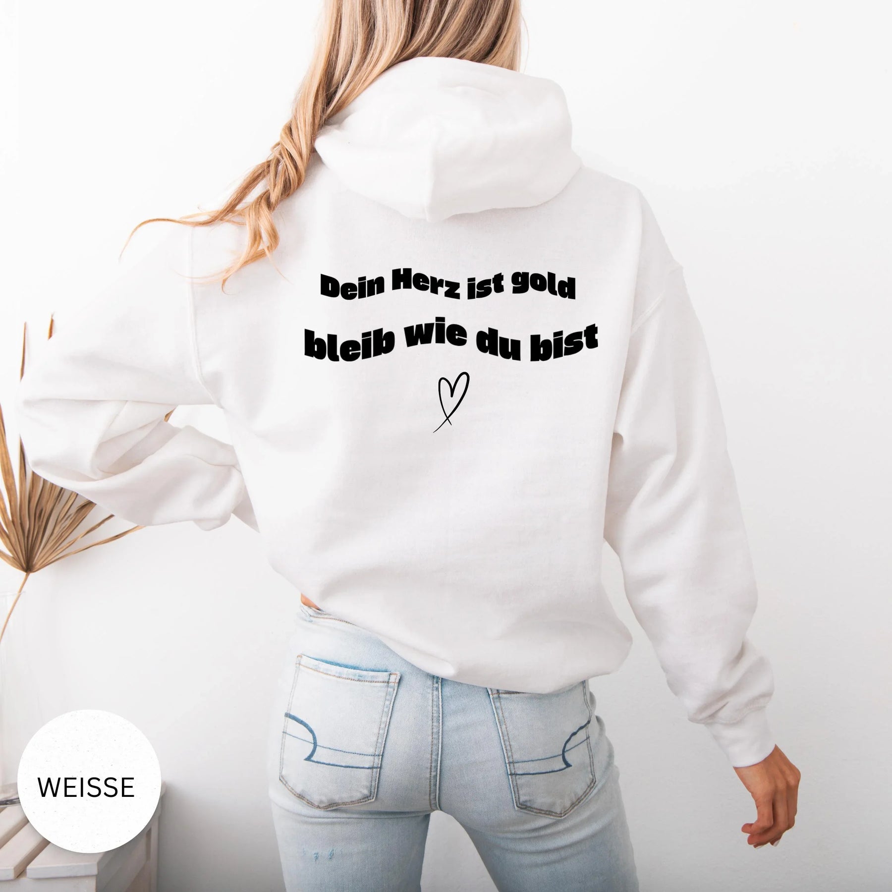 Dieser kuschelige Hoodie mit dem Spruch Dein Herz ist Gold bleib wie du bist“ ist das perfekte Geschenk für liebe Menschen. Ob als Aufmunterung, Dankeschön oder kleine Erinnerung daran, wie besonders jemand ist dieser Hoodie sagt es mit Stil und Herz.