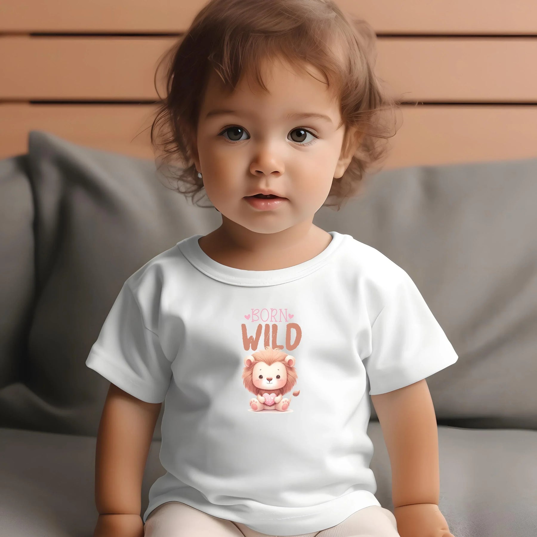 Dieses niedliche Baby-T-Shirt mit dem Aufdruck Born Wild“ und Löwenmotiv ist perfekt für kleine Entdecker! Ideal als Geschenk zur Geburt, zum 1. Geburtstag oder für den Kindergartenstart. Das Shirt ist weich, hautfreundlich und im klassischen Unisex-Schnitt für Jungen und Mädchen.