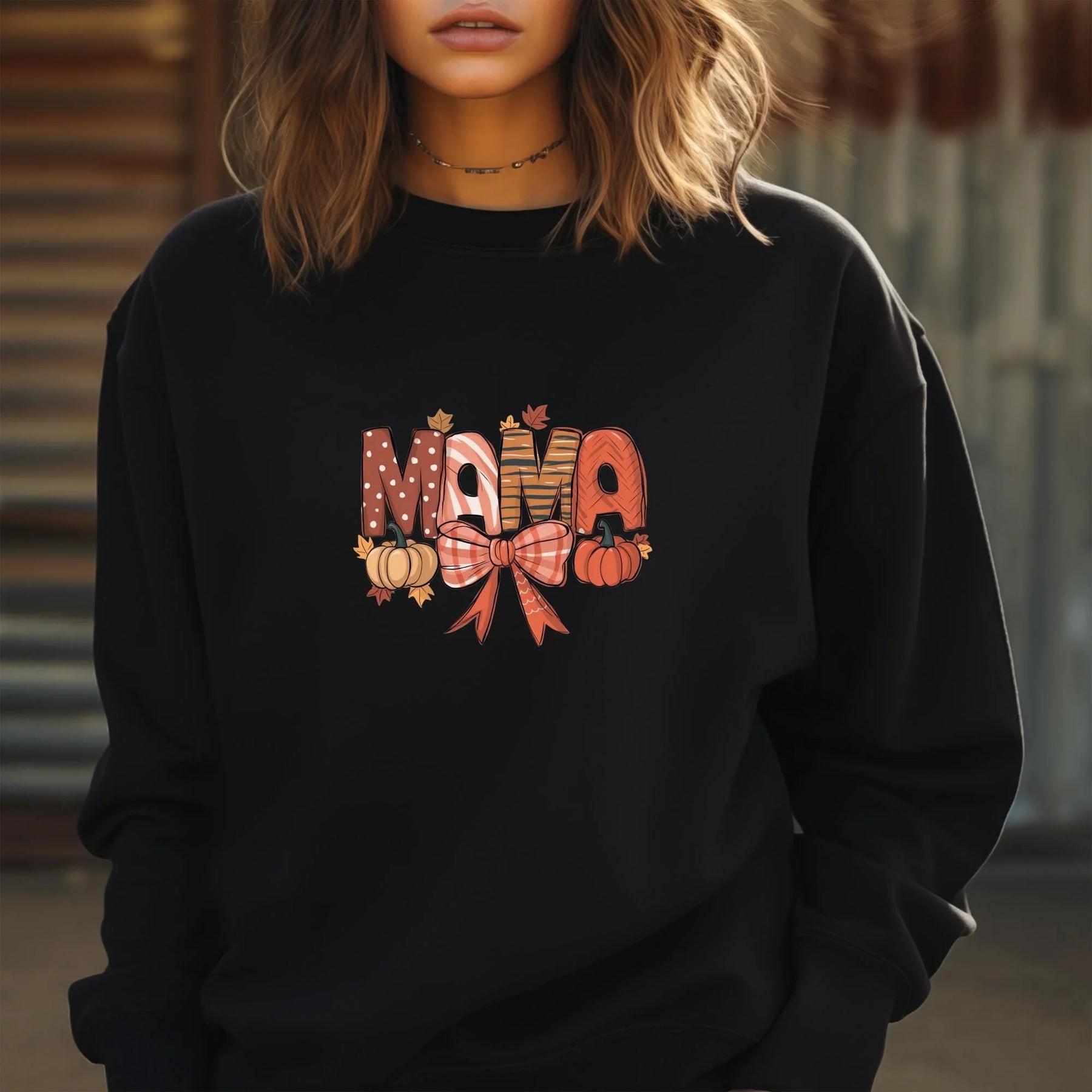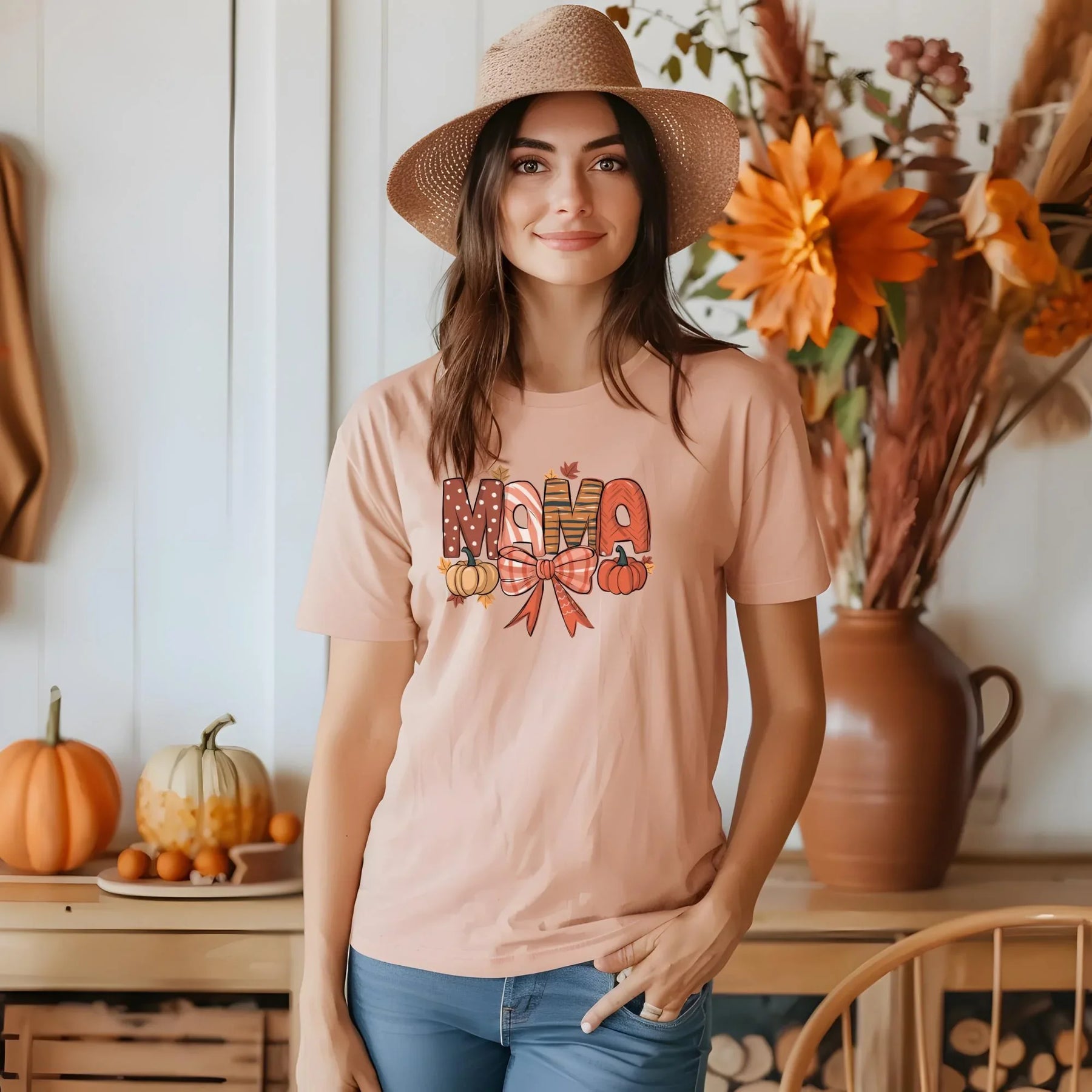 - ✅ Herbstliches "MAMA"-Motiv mit Kürbis & Schleifen