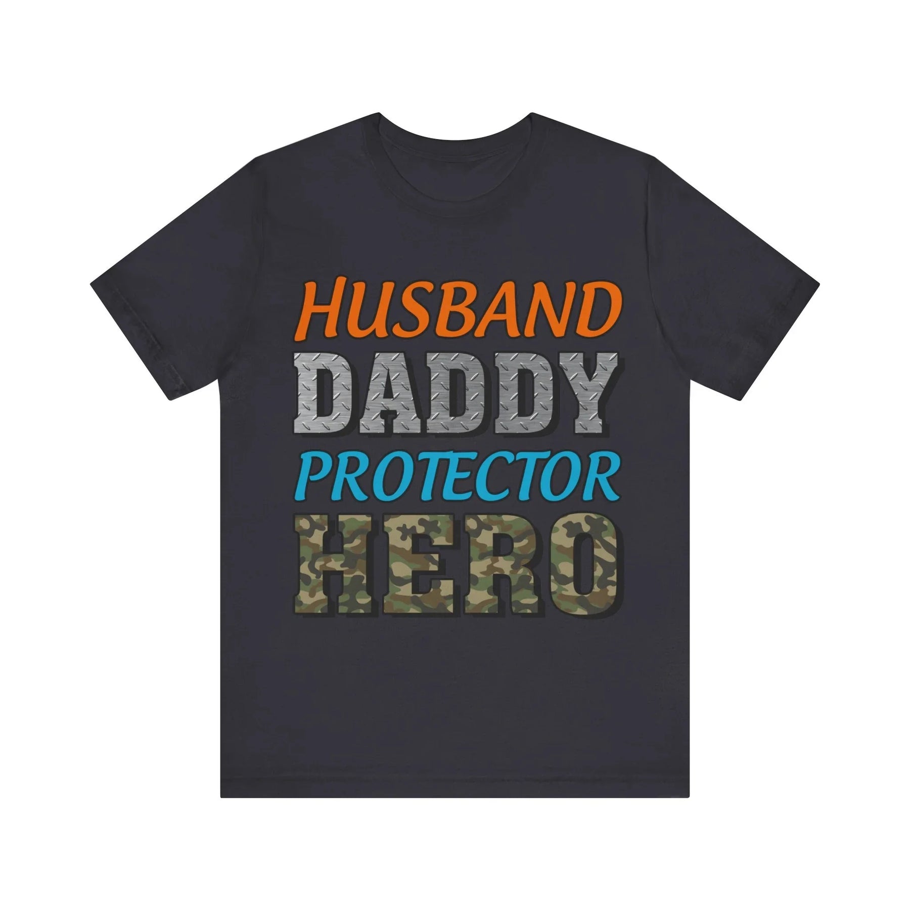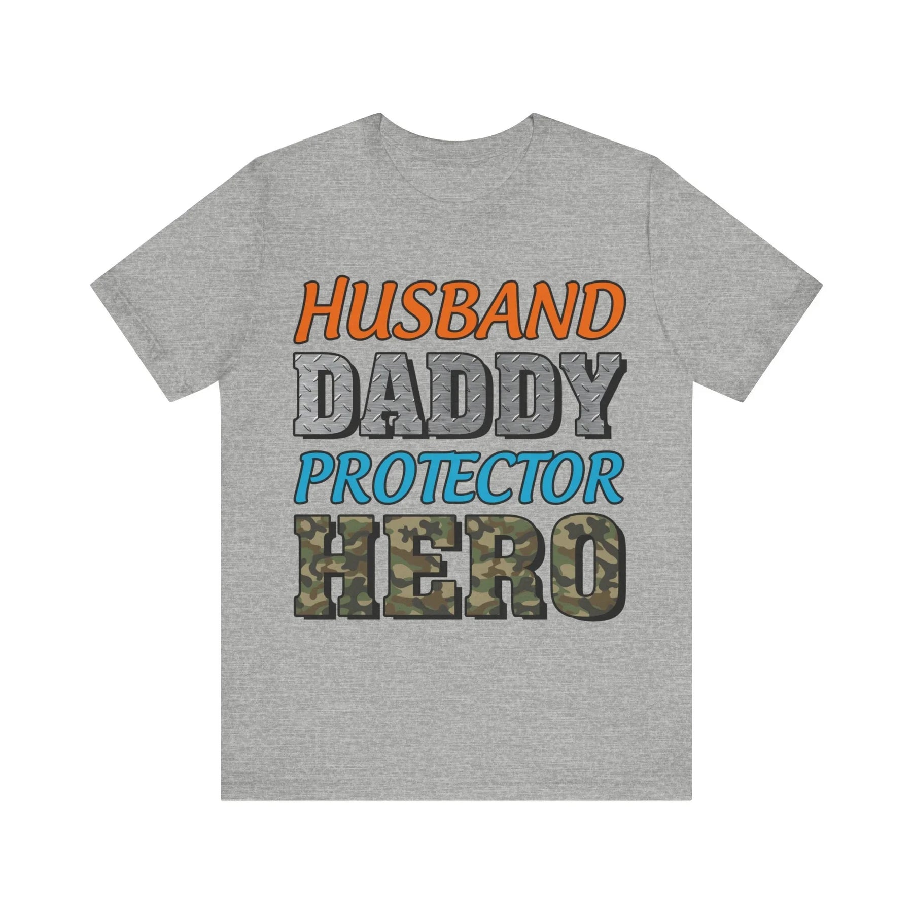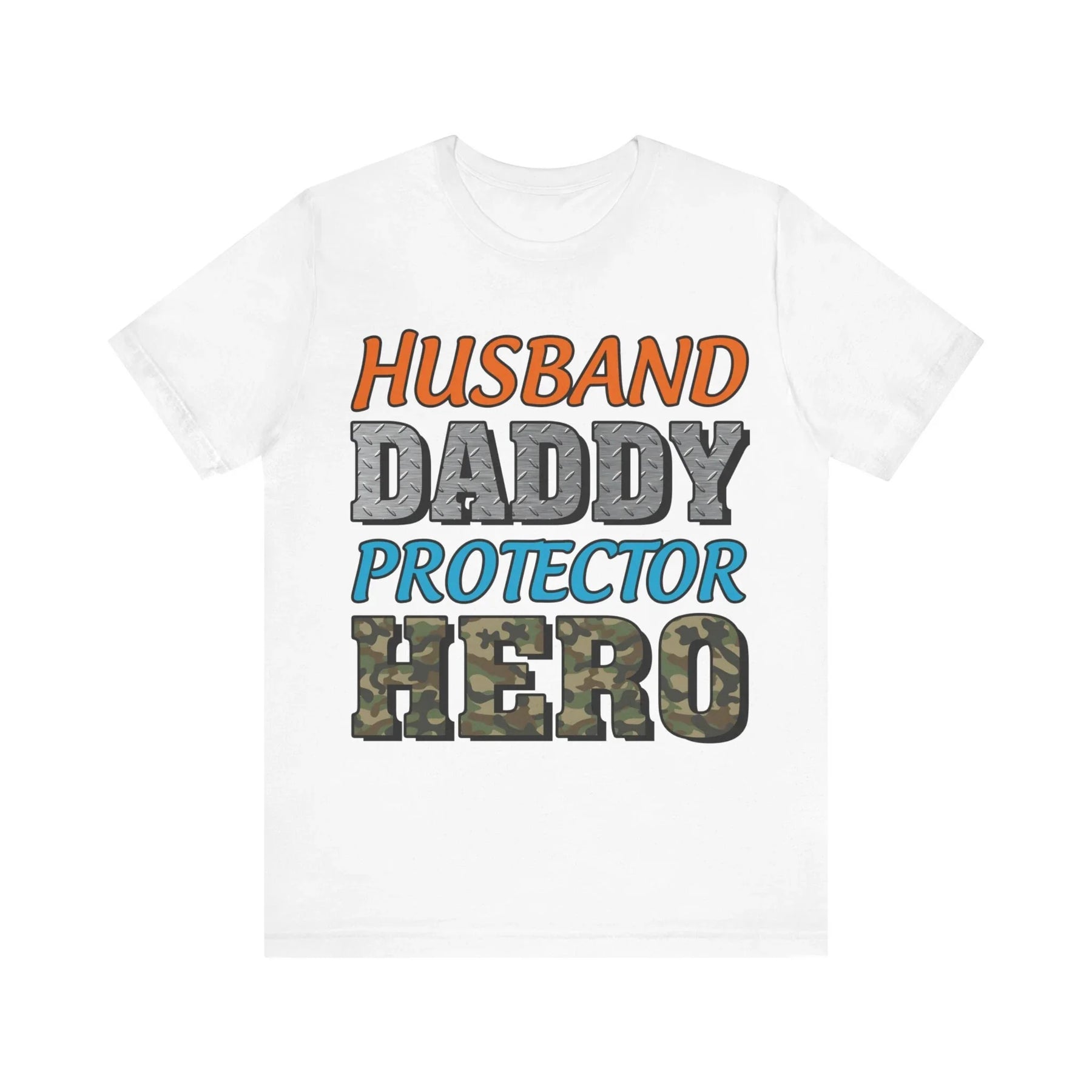 Inspiriert von der Liebe und Dankbarkeit für Väter ist dieses "Ehemann Daddy Protector Hero" Retro-Vatertagsshirt eine herzliche Hommage an alle Papas da draußen. Das Geschenk-T-Shirt ist nicht nur stylisch mit seinem Retro-Design, sondern auch aussagekräftig in seiner Botschaft. Hergestellt aus hochwertiger Baumwolle fühlt es sich angenehm auf der Haut an und eignet sich perfekt als persönliches Geschenk zum Vatertag. Mit seinem auffälligen Druck wird dieses Shirt sicherlich ein Lächeln auf das Gesicht jedes stolzen Vaters zaubern. Überraschen Sie Ihren Papa mit diesem einzigartigen und liebevollen Shirt und lassen Sie ihn wissen, dass er Ihr persönlicher Held und Beschützer ist.
