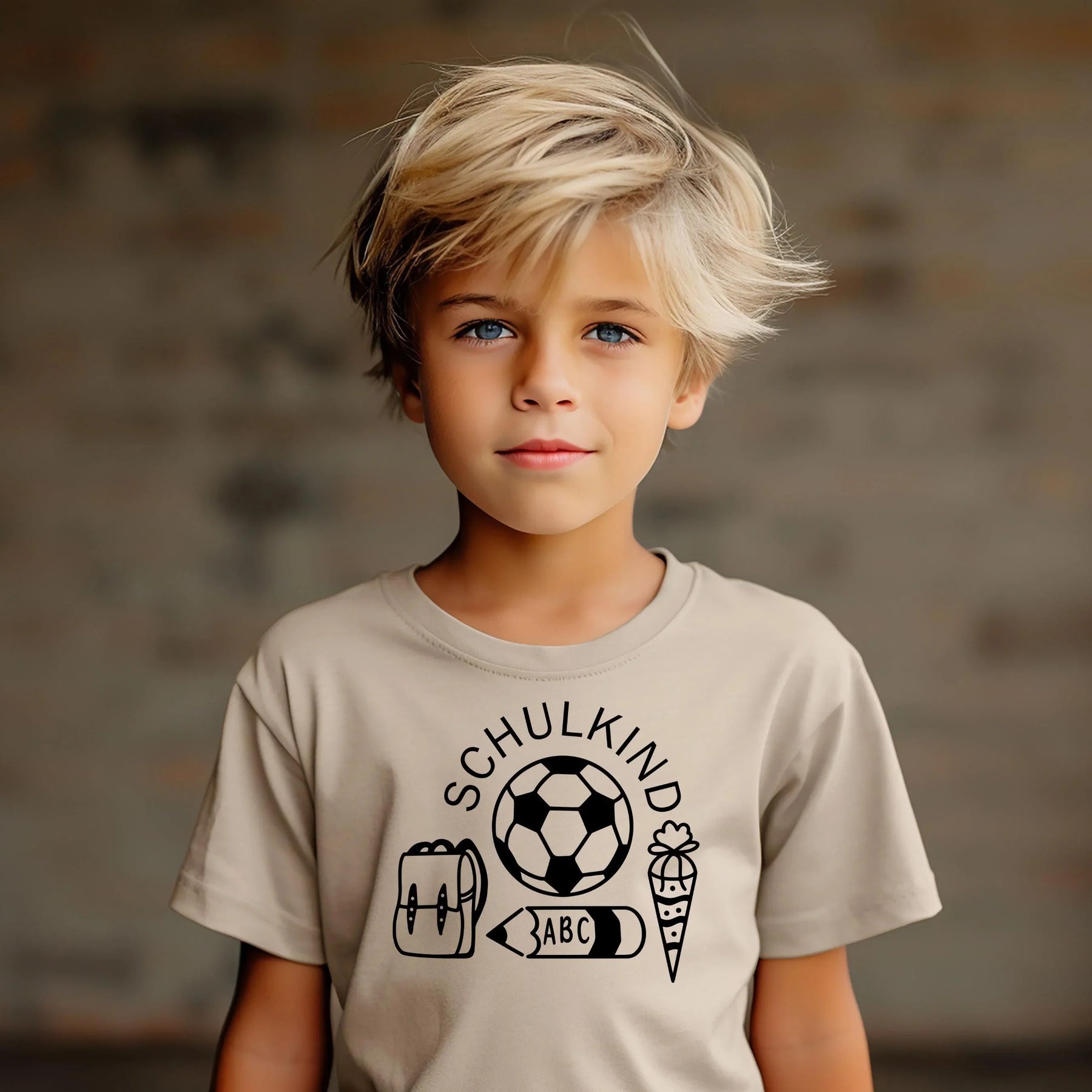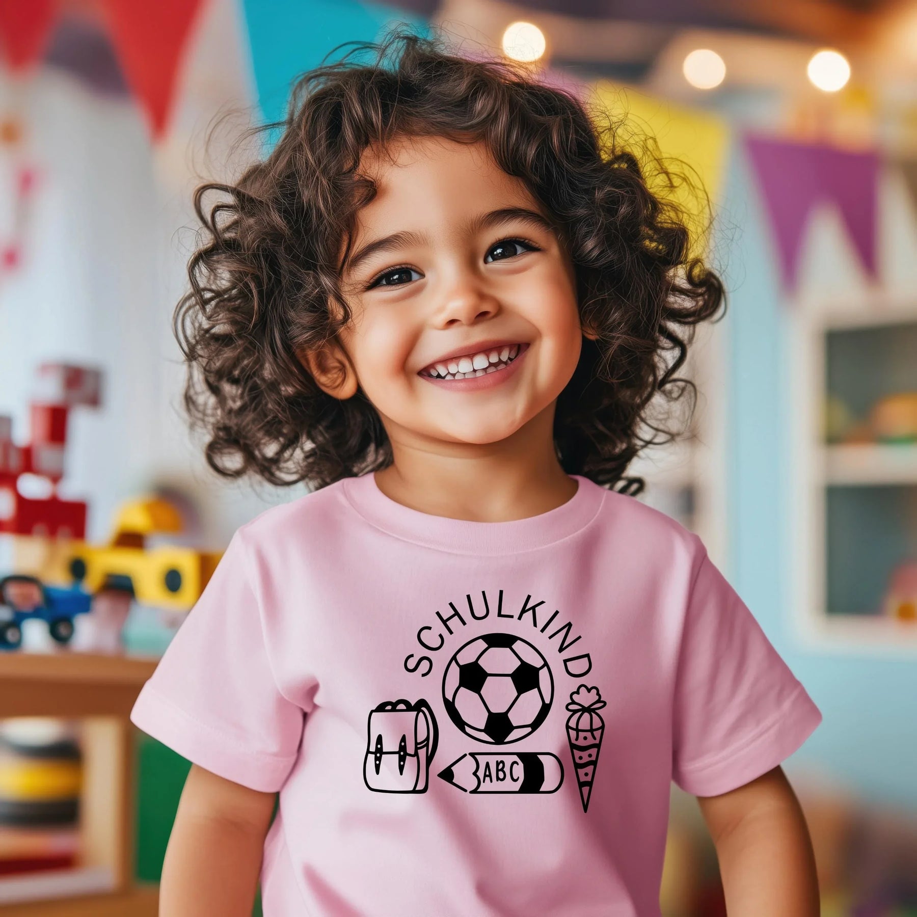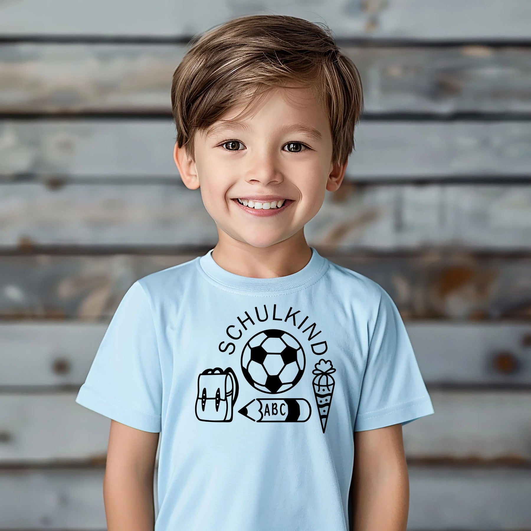 Dieses sportliche Schulkind-Shirt mit Fußball, Schultüte und ABC-Motiv ist ideal für kleine Kicker zum Schulanfang. Perfekt als Geschenk zur Einschulung, für den ersten Schultag oder das Einschulungsfoto!